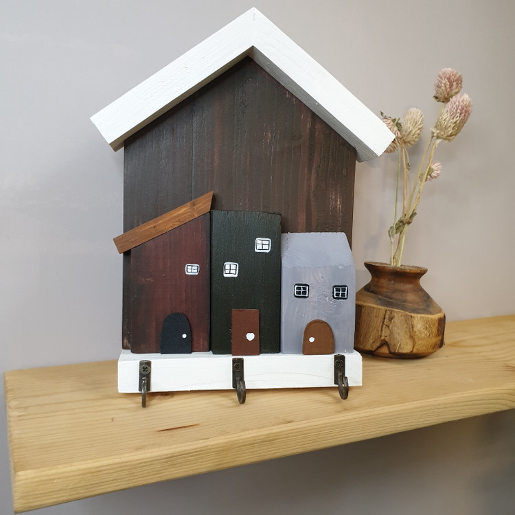 جاکلیدی سه قلابه چوبی طرح کلبه